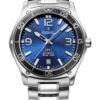 Women’s watch EBEL 1911, stainless steel case, Ø 34mm, pastel green galvanic dial with Arabic numerals, date window at 6:00, sapphire crystal with antireflective treatment underneath, stainless steel links bracelet, folding clasp, comes with additional fabric strap (made with upcycled ocean-bound plastic) with cork insert, Swiss quartz movement, water-resistant up to 10 bar