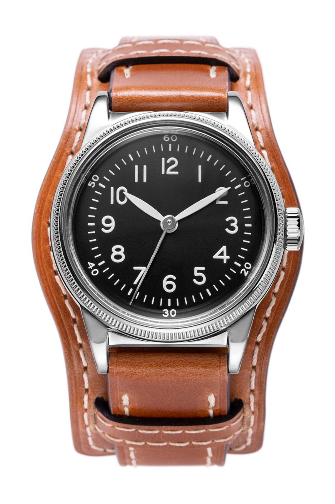 The A-11 Type 44 by Praesidus is a tribute to the legendary original A-11 watches without attempting to replace the historical timepieces, which remain available in the market, each bearing its own historical significance. Instead, the Type 44 serves as a high-quality, contemporary homage to the legendary originals. Using a 1944 Waltham as a benchmark, Praesidus imagined the Type 44 with great attention to detail. Unlike the original A-11s, the Type 44 retains a unique feature: the absence of a counter-balance, reflecting the vintage Waltham’s wear and tear over time, as it had broken off over time. The Type 44 features a durable stainless steel case and a water resistance of 10 ATM, ensuring greater ruggedness than its predecessors. Its Swiss-made P024 movement guarantees precision and reliability that an 80-year-old original A-11 just cannot match. For those seeking a wearable, reliable A-11 that captures the essence of American ingenuity and the bravery of its creators, the A-11 Type 44 is the perfect choice. Available in a choice of 32mm and 38mm sizes, it features a brown bund leather strap, making it a timeless revival suited for the modern era. Proudly assembled in America, the A-11 Type 44 is a piece of history brought into the 21st century.