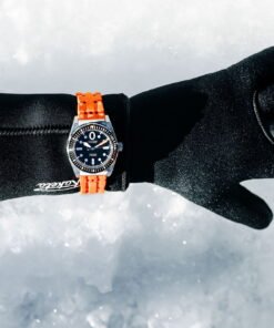 The silicone strap is as thoughtful as it is functional, with full-length perforations to accommodate wetsuits and minimize water retention. A quick-release system makes swapping to the included black strap a breeze, keeping versatility front and center. Powering the Amphibia is Raketa’s in-house automatic movement. Visible through the caseback, the rotor is engraved with a mermaid in the style of Russian folklore—a poetic nod to the deep-sea dreamers among us.