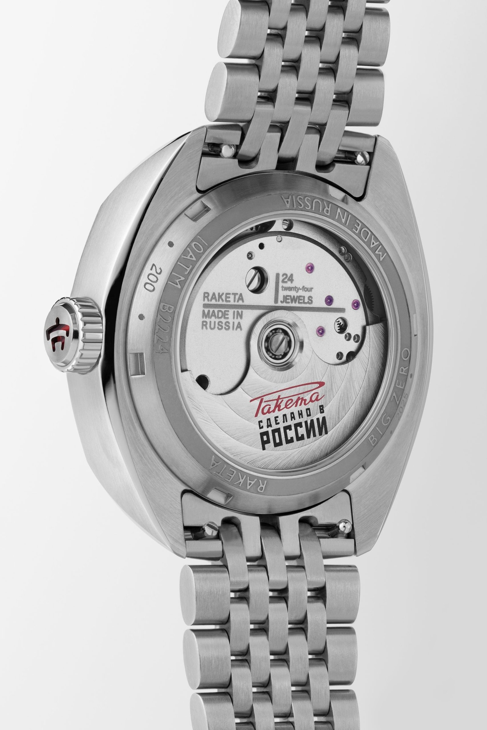 Raketa’s Big Zero is a piece of watchmaking history. Born in the Soviet era, this design defied convention with its bold numeral layout and radical philosophy: time doesn’t start at 12—it starts at zero. Now, for the first time, this legendary model is available on a stainless steel bracelet.