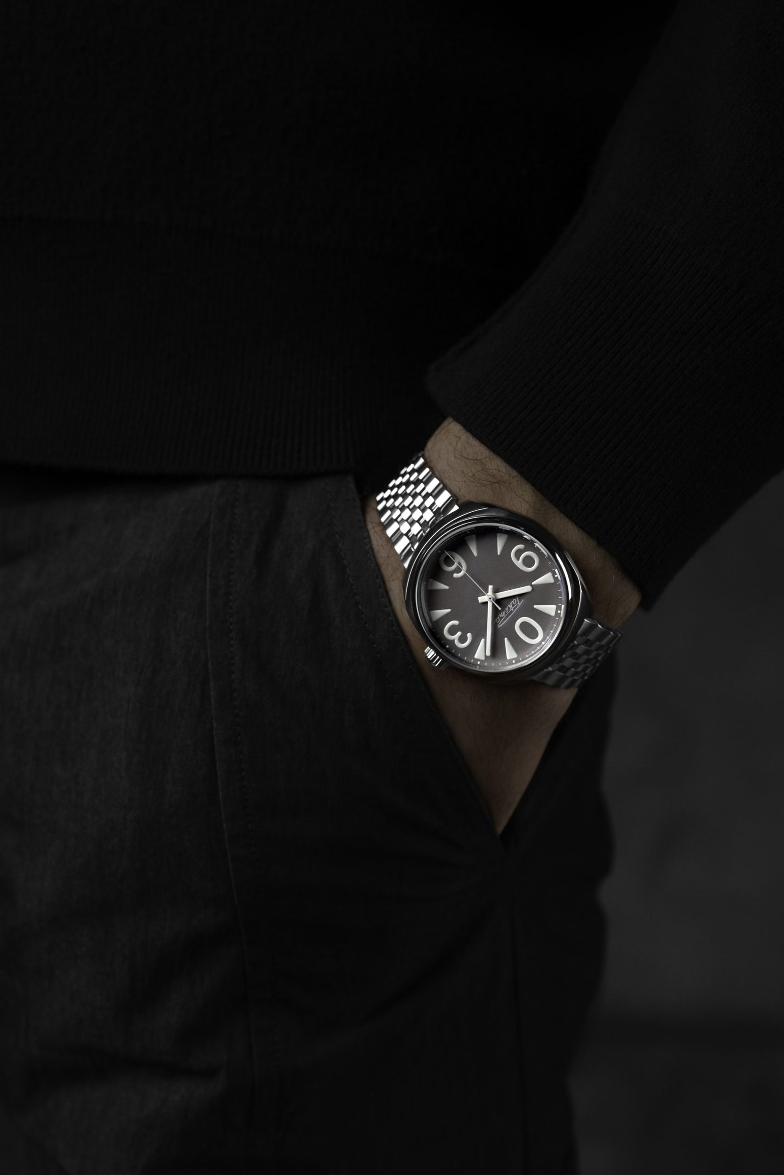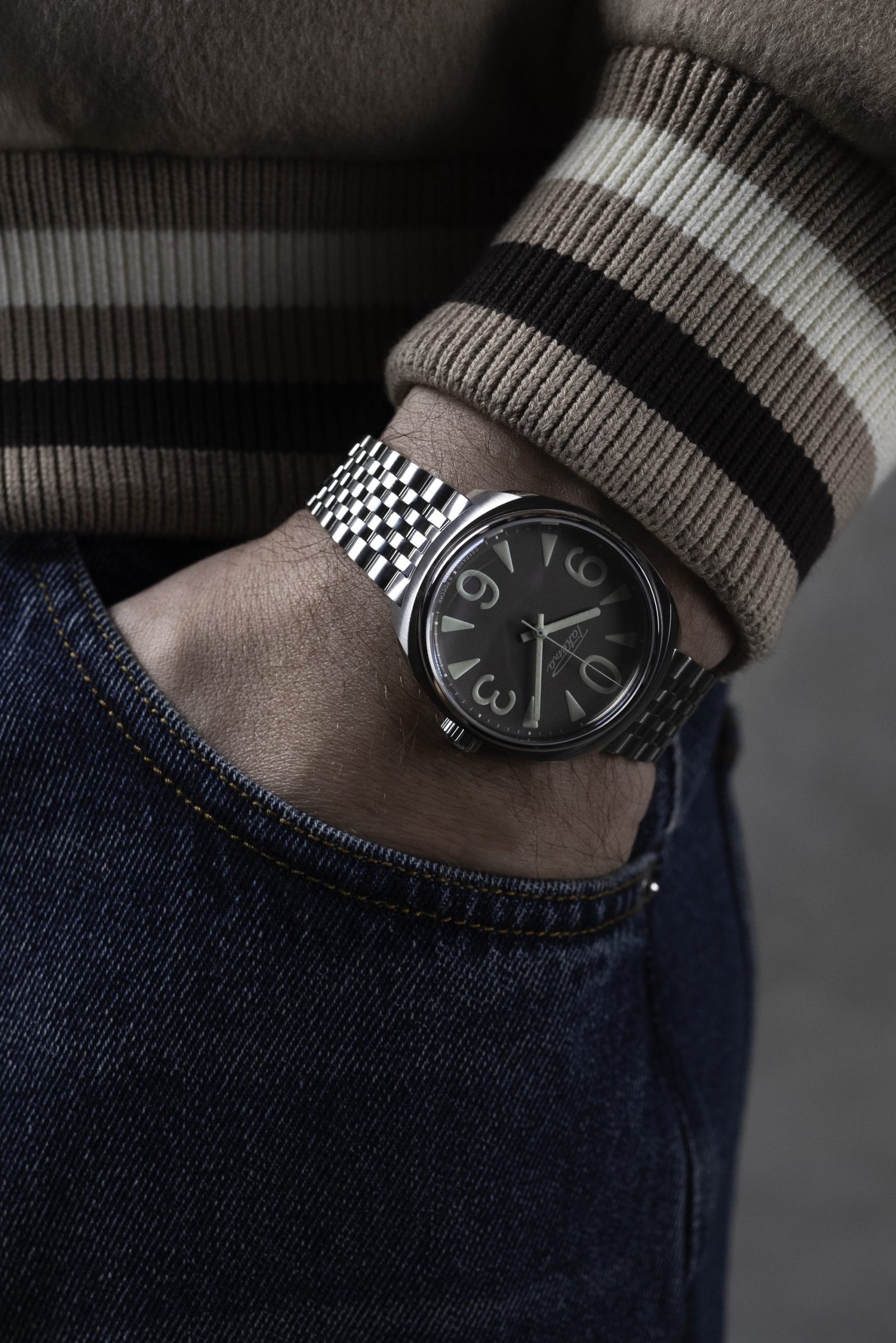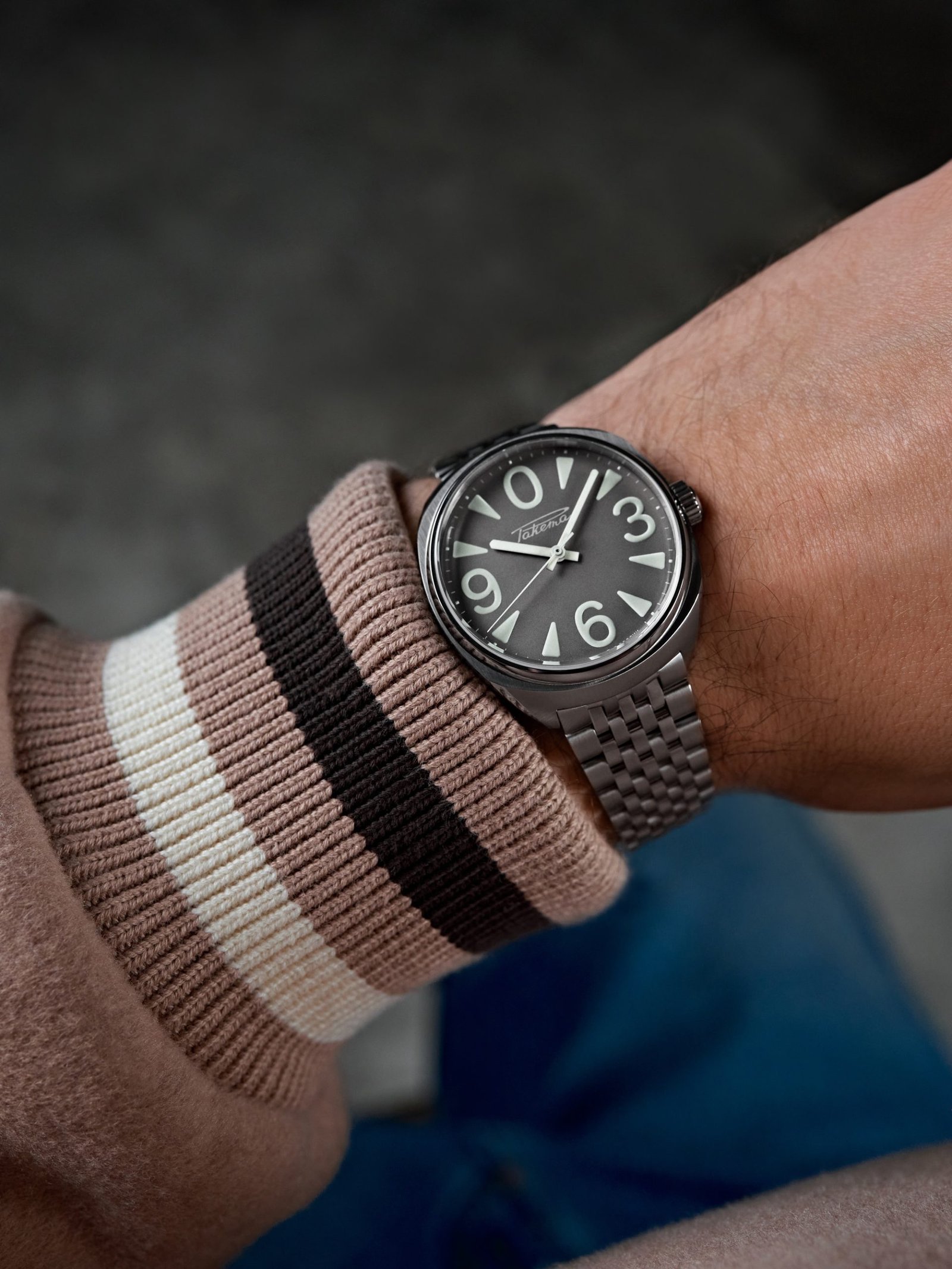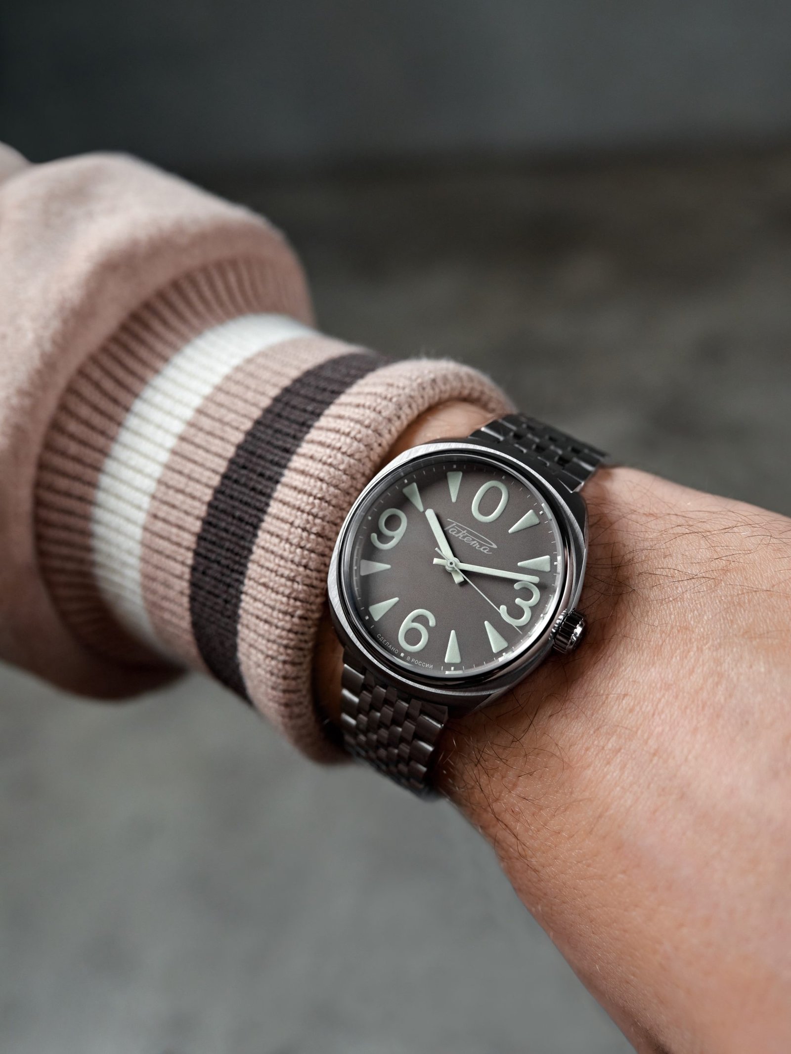 The grey dial is where things get interesting. Depending on the light, it shifts between warm taupe and cool metallic, creating an ever-changing visual dynamic. The oversized numerals, luminous hands, and minimalist layout ensure readability, even in low light. There’s a quiet confidence in this design—unapologetically straightforward yet deeply charismatic.