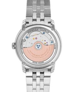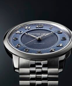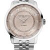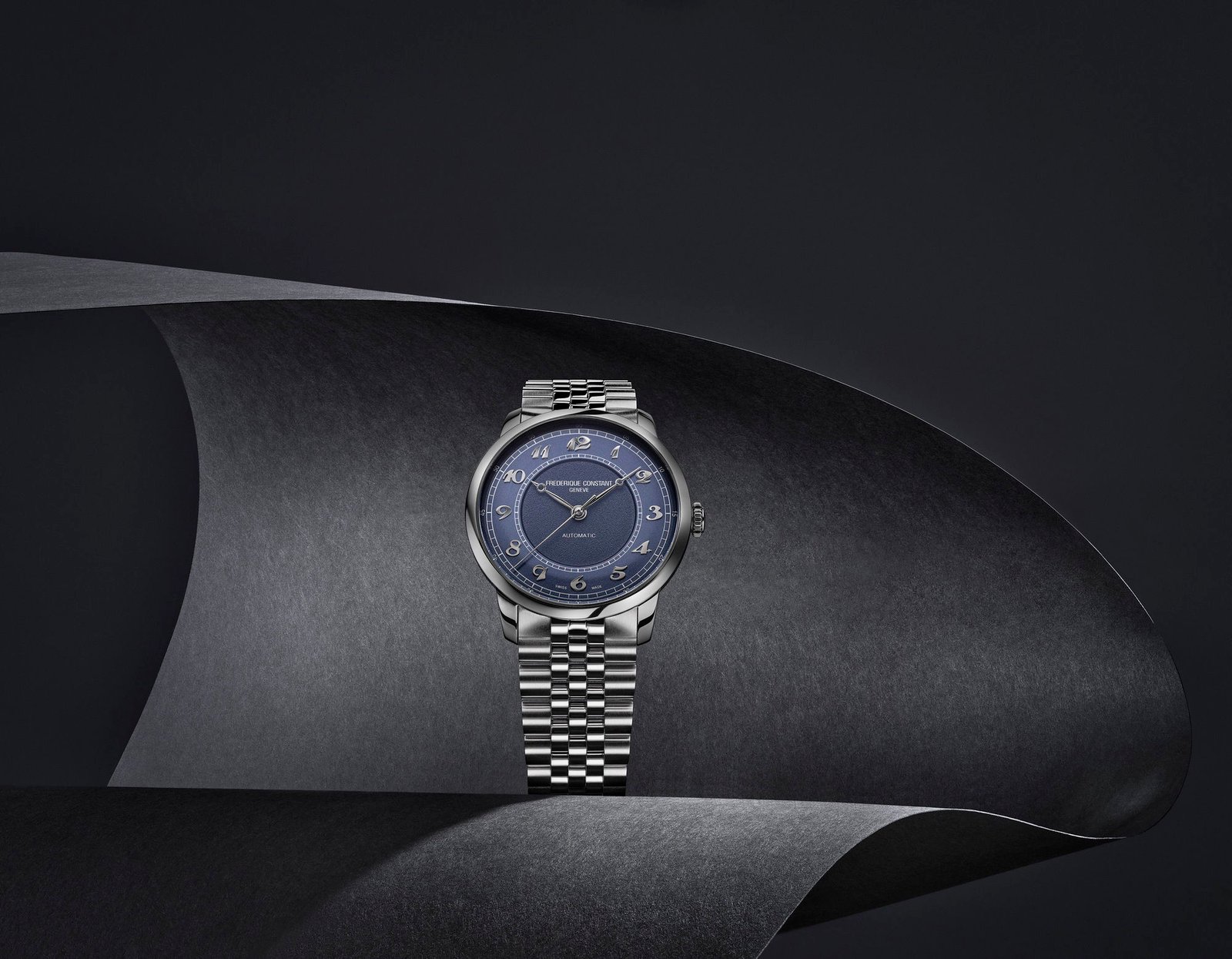 Frederique Constant has introduced two new additions to its Classics Premiere collection, available in this year’s signature colours: blue and salmon. These models retain the refined 38.5mm case size but debut a fluid, polished steel case and bracelet combination, offering a sleeker, more contemporary feel than earlier leather-strap editions. Designed to suit both men and women, the watches are positioned as versatile daily wearers. The dials highlight a return to softer, pastel tones that have gained popularity at recent watch fairs, praised for their understated elegance and nostalgic link to the 1950s and 60s. Vintage design cues abound: Arabic numerals in a classic twentieth-century typeface, pomme-style hands rooted in 18th-century tradition, and a “railtrack” minute circle inspired by Art Deco watches of the 1920s. Frederique Constant has elevated the aesthetic further with a two-part dial finish, a matte-grained centre that plays with the light, and a surrounding sunray ring around the hour markers. Completing the look is a new five-link steel bracelet that combines flexibility with polished surfaces, matching the shine of the case, hands, and numerals. A sapphire caseback reveals the automatic FC-301 calibre, derived from the respected La Joux-Perret movement, which delivers precision and a robust 68-hour power reserve. The result is a pair of watches that honour Geneva’s traditional watchmaking codes while adding an urban edge.