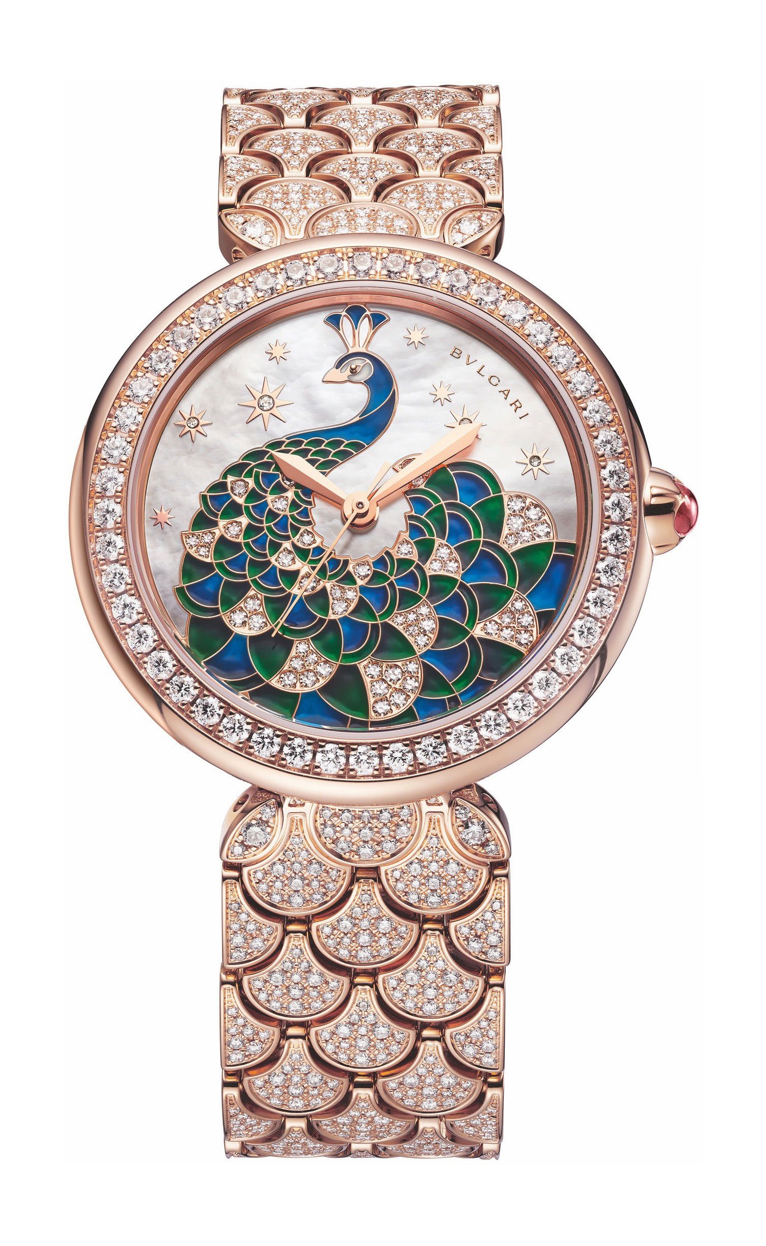 Bulgari’s Divas’ Dream Peacock collection, launched in 2017, continues to evolve with new interpretations that showcase the brand’s proficiency in jewelry, artisanal crafts, and horological complications. This collection highlights the peacock, a symbol of beauty and confidence, which is a key element in Bulgari’s bestiary. The intricate designs of the collection draw inspiration from the peacock’s feathers, featuring arabesques and curves that echo the mosaic patterns found in the Baths of Caracalla, integral to Bulgari’s design language. Jean-Christophe Babin, CEO of Bulgari, in the book “Bulgari Beyond Time,” asserts that the brand has elevated the Swiss concept of métiers d’art through this collection. The Divas’ Dream Peacock range is part of Bulgari’s larger ‘Animali fantastici’ bestiary, which also includes the ‘Serpenti’ collection, symbolizing mysterious seduction with its serpent motif. In contrast, the Peacock collection embodies elegance and grandeur, reflecting the same sublime qualities as the natural peacock.