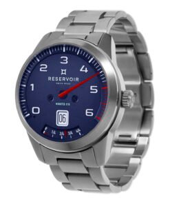 The GT TOUR Blue Edition wristwatch features a steel strap and houses the impressive caliber RSV-240 movement. This collection draws inspiration from classic car races, incorporating their iconic elements.