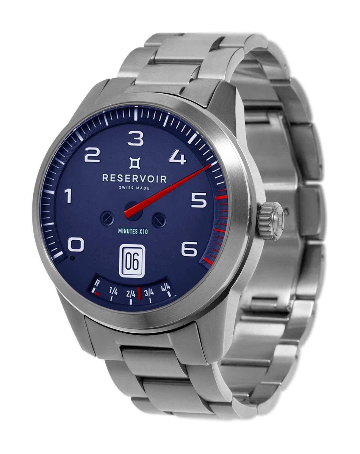 The watch boasts a matte blue dial and a striking red minute hand, reminiscent of the bold color contrast found on racing car meters. This design choice prioritizes readability. When worn with its stainless-steel bracelet, the GT TOUR timepiece pays homage to the glorious era of car racing.