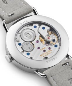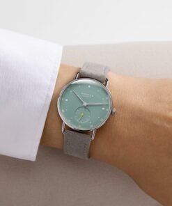 Nomos Glashütte’s Metro 33 watches, designed by Mark Braun, embody urban elegance and style, celebrating a blend of functionality and design. Inspired by cityscapes, each watch tells a distinct city story, using colors and materials that mirror elements like skyscrapers, red brick buildings, and city parks. For instance, the watches use silver to reflect skyscrapers, muted red to evoke red brick buildings, and sage to symbolize city parks. The collection, marking its tenth anniversary, showcases watches in stainless steel that have intricately curved sapphire crystal glass, quick-change spring bars, and a uniquely adorned Metro crown, highlighting the exquisite craftsmanship. They feature playful details such as colorful hands and minute markers, enhancing their modern charm. Each watch in the Metro 33 series is paired with a light gray vegan velour leather strap. They are powered by the hand-wound Alpha movement from Nomos, ensuring reliability and precise timekeeping, tailored to meet the demands of a bustling urban lifestyle. Braun sees these new models as embodiments of contemporary elegance—smart, playful, and energetic.