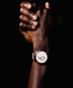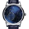 The Nuit Fantastique Grained Silver offers a unique perspective on time, embracing minimalistic design while playing with our perception of it. With its elegant textured finish, the dial represents a significant technical achievement, accentuating the watch’s sophistication. It boldly departs from traditional symmetry by consisting of four components, three constantly in motion. These include the largest ring for tracking hours, a minutes wheel that discreetly appears through an opening, and a seconds wheel with a center adorned with a “”Clous de Paris”” pattern. This interplay between minutes and seconds offers a glimpse into the infinite and the relentless progression of time, all enclosed within a meticulously finished inner bezel.
