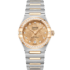 The 29 mm watch is presented with a case and mono-rang bracelet created from stainless steel and 18K Sedna™ Gold, with signature Constellation features including the polished claws, half-moon facets, and a diamond-paved bezel.