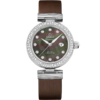 The attractive dial is made with white, mother-of-pearl, to accentuate the feminine touch.