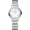 In this 27.5 mm stainless steel – 18K yellow gold model, the dial is crafted from white mother-of-pearl. The display is distinguished by yellow gold-plated hands, as well as alternating Roman numerals and diamond markers. The pure look of the timepiece is completed by a full caseback embossed with a God Chronos medallion.