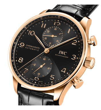 Since 1998, the Portugieser Chronograph has brought a touch of sporty elegance to the Portugieser collection from IWC Schaffhausen. The IWC-typical, vertical arrangement of the subdials displays the stopped minutes directly at the 12 o’clock position and places the small seconds at 6 o’clock. This layout enhances readability and has made the Portugieser Chronograph a design icon. Another feature is the inner flange printed with a quarter-second scale, enabling high-precision stop-time readings.