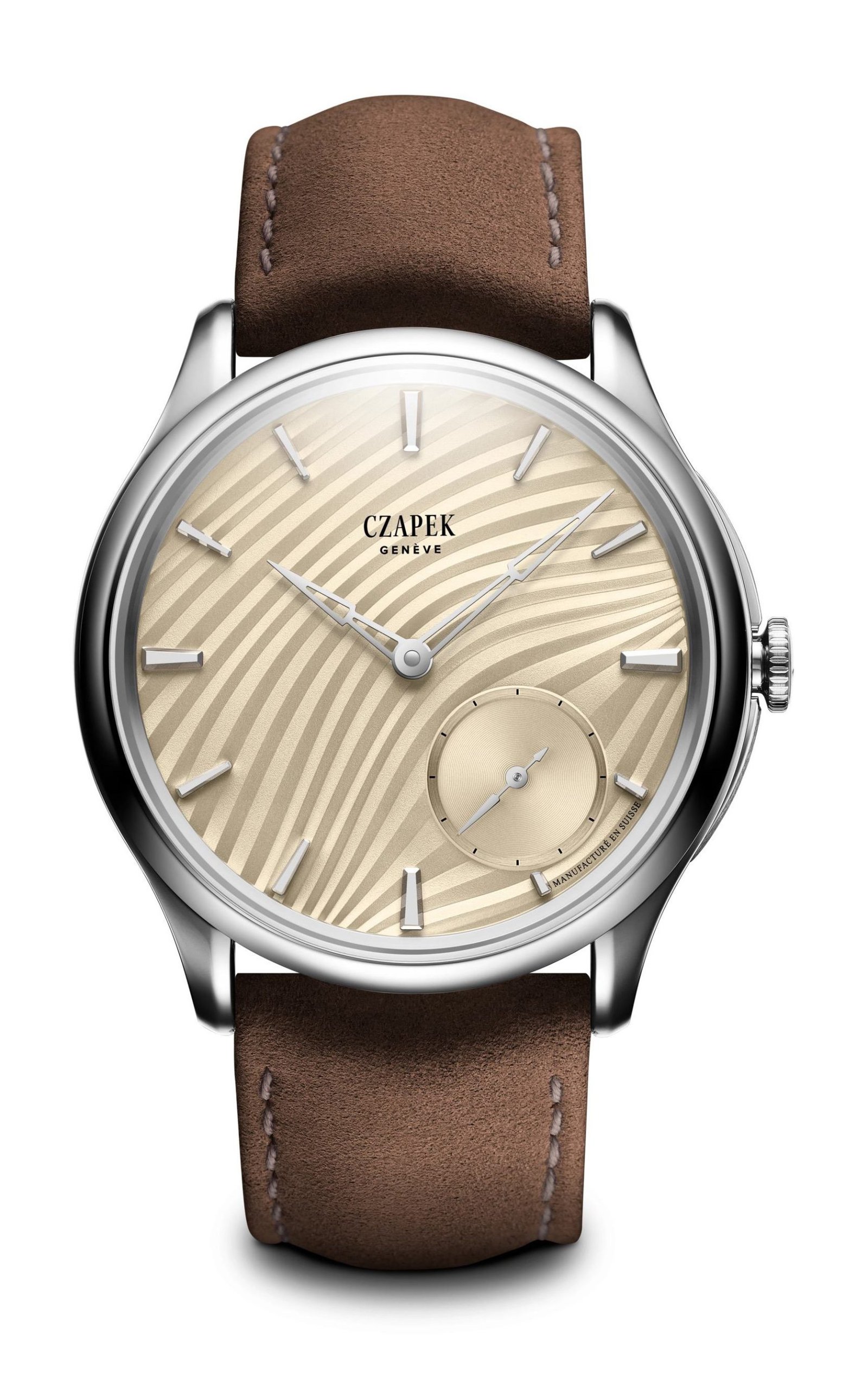 Introduced at Watches and Wonders 2024, the Czapek Promenade collection blends haute horology with haute couture. Designed as a canvas for artistic expression, it embodies contemporary sophistication with a playful edge. Originally conceived as a women’s watch, the idea evolved into a gender-inclusive timepiece—chic, modern, and mechanically refined. As Czapek & Cie CEO Xavier de Roquemarel puts it: “Beauty and creativity transcend gender. A truly stunning watch is universally appealing, much like a perfectly tailored tuxedo.” Housed in a sleek 38mm case, Promenade’s defining feature is asymmetry, with a dynamic dial design radiating from the small seconds sub-dial at 4:30. For 2025, Czapek introduces the Plissé (pleats) dial, inspired by haute couture—Marilyn Monroe’s iconic pleated dress, Issey Miyake’s avant-garde folds, and Yves Saint Laurent’s timeless Le Smoking tuxedo. The dial mimics the fluidity of fabric, appearing as if gently pushed aside by the sub-dial’s weight, creating an illusion of dance-like movement through an intricate stamping process developed with Metalem. Available in Ivory, Pearl White, and Rose, the Plissé collection is limited to just 18 pieces per color. Integrating applied indexes within the pleated contours presented a technical challenge, but the result is a mesmerizing interplay of light and shadow. To maintain its slim profile, Czapek adapted its SXH5 micro-rotor movement, ensuring both mechanical excellence and aesthetic harmony. A modern evolution of Czapek’s iconic Quai des Bergues, the Promenade case features sandblasted sides, curved crown guards, and a slim, rounded bezel. With Promenade Plissé, Czapek reaffirms its commitment to artistic craftsmanship, creating a timepiece that seamlessly merges haute horology with high fashion.