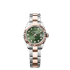 This Oyster Perpetual Lady-Datejust in 18 ct Everose gold features a chocolate, diamond-set dial and a Jubilee bracelet.