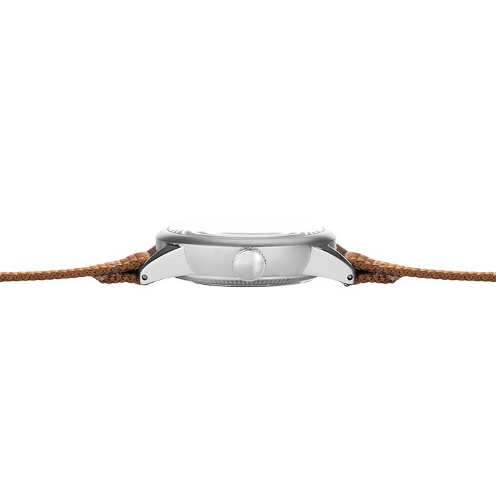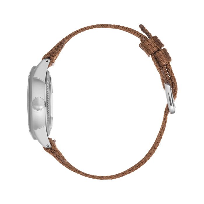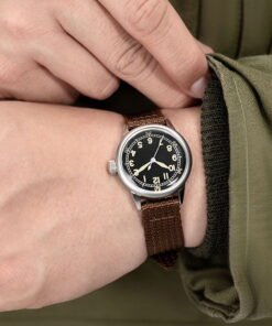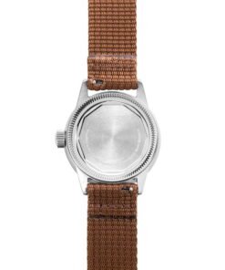 Combining the collection’s most authentic dial with a “modern” Nylon strap, the “Original Nylon” blends vintage and contemporary elements. The factory-fresh A-11 look from 1942 retains its vintage, no-frills design. The Nylon strap complements the field watch aesthetics while adding a modern touch, similar to what you’d find on today’s field watches. The matte black dial with white-silver indexes ensures exceptional legibility, a necessity given the operational demands during WW2. The distinctive minute and hour indexes harken back to the era when these watches were hand-painted. All those minute imperfections in this model have been retained to preserve the authenticity of an original. The case is available in either a 32mm or in a 40mm size. The main case body is sandblasted to eliminate any gloss, in true field watch fashion. However, as a nod to the original shiny chrome plating found on most A-11s, the lugs are polished. The Brown tressed Nylon strap strongly emphasizes the original field watch look while giving it a more rugged appearance. The Nylon tressing adds thickness to the watch, enhancing its robust feel (you’ll notice it on your wrist as it breaks in!) and bringing it into the modern era post-WW2.