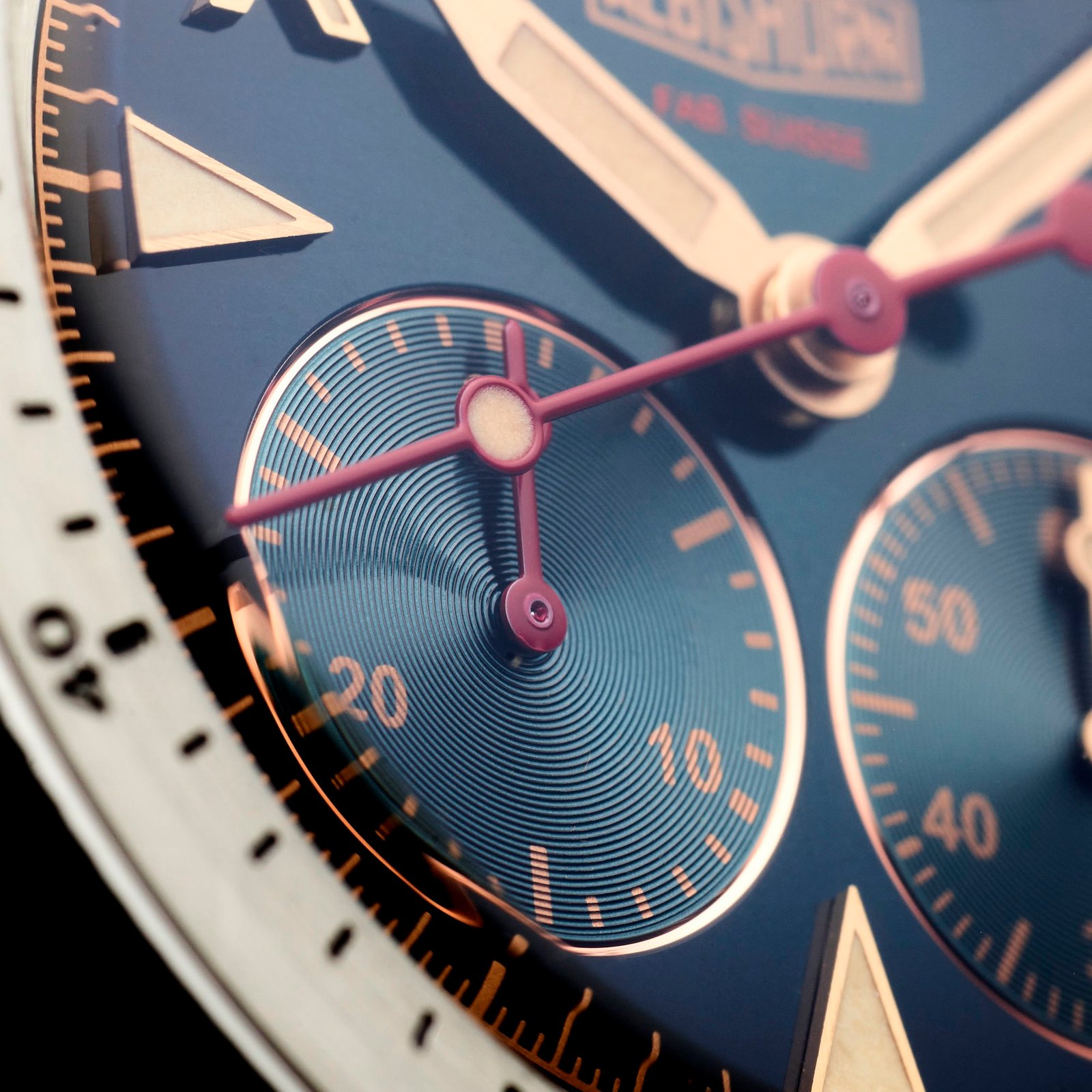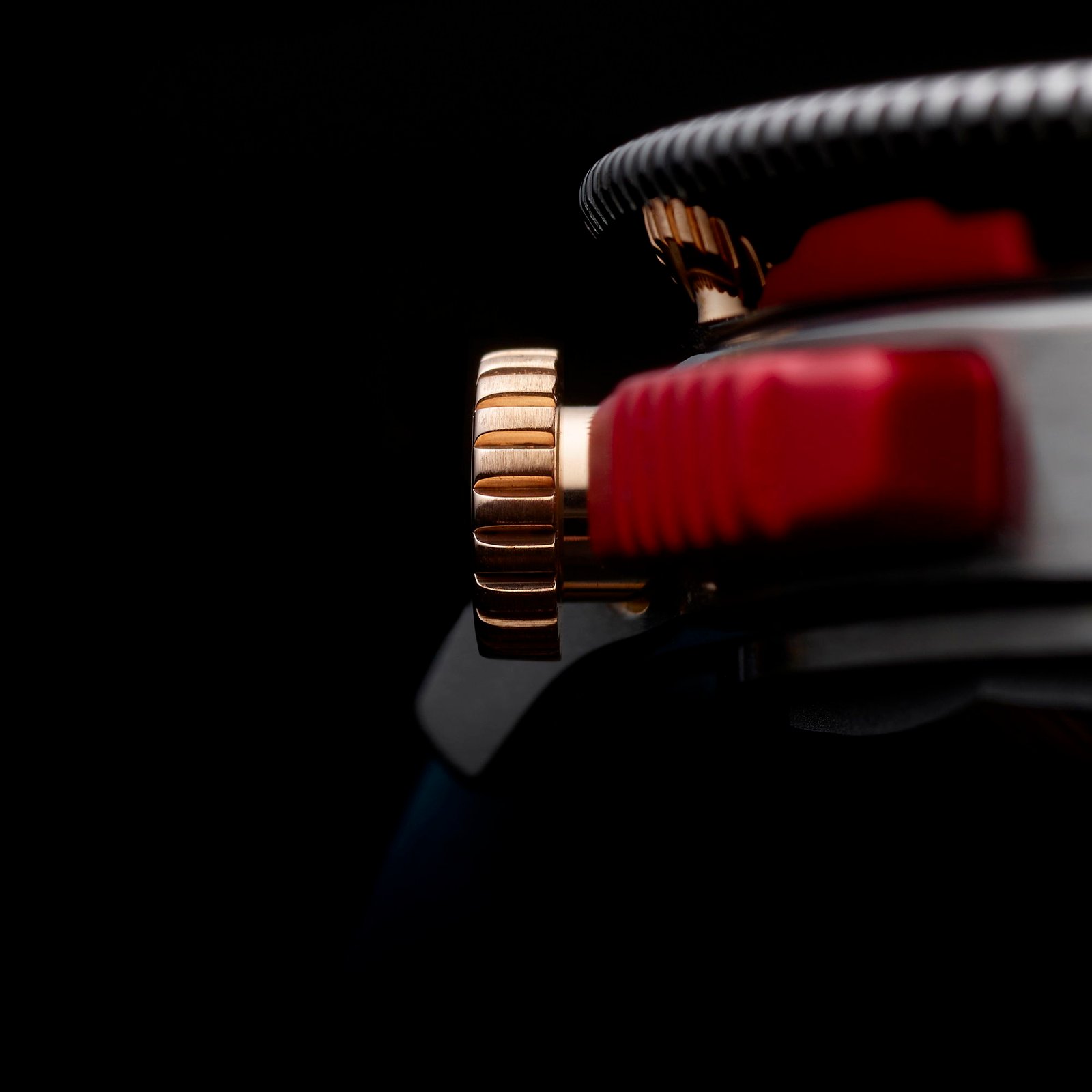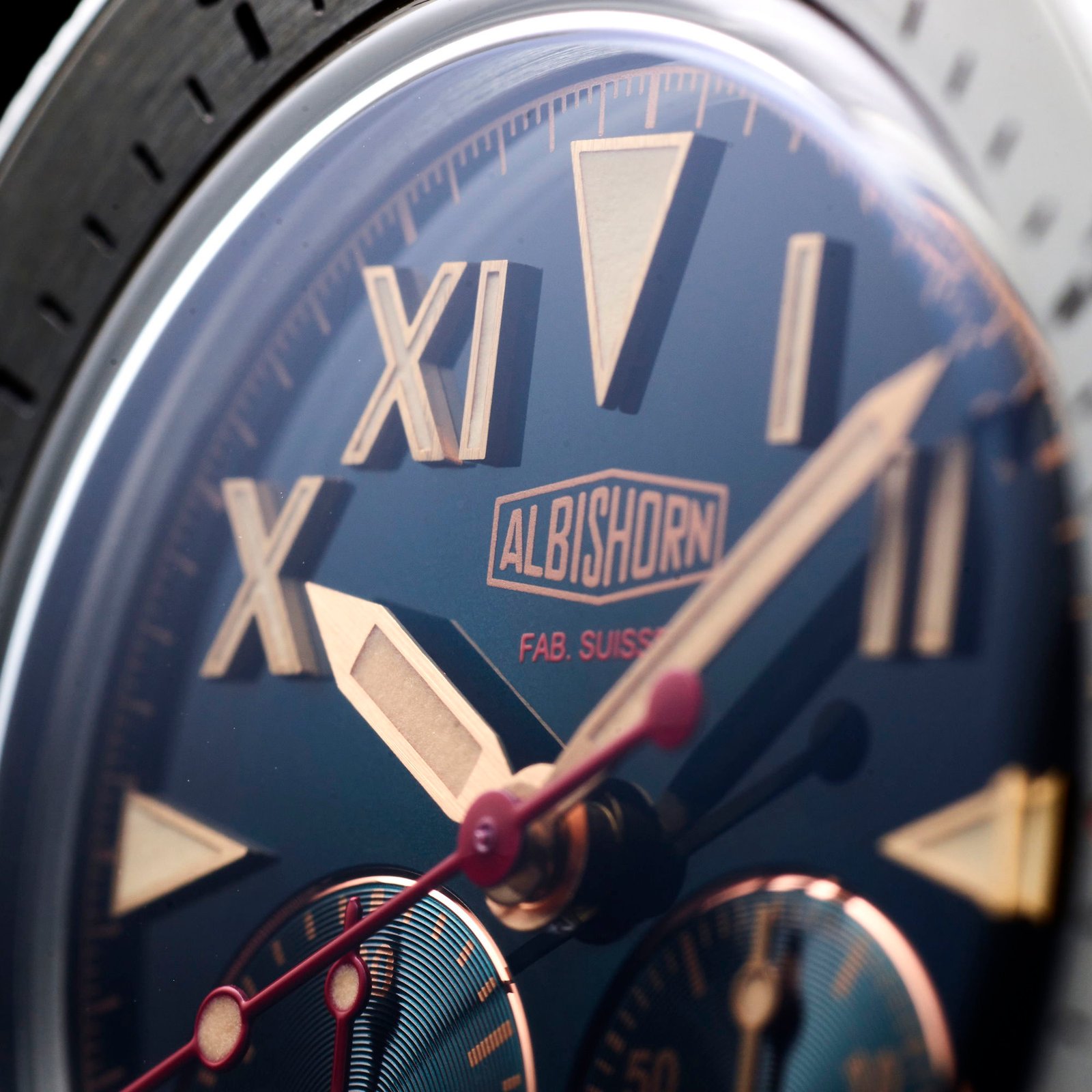 Albishorn continues its journey through the annals of horology with the Thundergraph, a chronograph designed as if it were the ultimate tool watch for the Swiss 1952 Mount Everest expedition. This “Imaginary Vintage®” timepiece fills a hypothetical gap in history, blending mid-century design with modern craftsmanship. The concept? A rugged yet elegant alpine chronograph, built to withstand extreme cold, altitude, and the unforgiving elements of the Himalayas. The Thundergraph’s dial is a masterclass in readability and vintage-inspired design. Featuring the “California ghost” dial, it maintains the iconic split layout but omits Arabic numerals in favor of two strategically placed subdials. Luminescent hands, oversized Roman numerals, and triangular indexes ensure visibility in low-light conditions, while the oversized conical bezel—designed for easy grip with gloves—adds both form and function. The crown at 10:30 and monopusher at 9:30 reflect thoughtful ergonomics, allowing for seamless operation even in harsh conditions. Under the hood, the Thundergraph houses a proprietary hand-wound chronograph movement, developed in La Chaux-de-Fonds and certified by COSC for superior accuracy. With an ultra-thin 5.70 mm movement height and an impressive 65-hour power reserve, it recalls the golden age of Swiss chronographs while delivering modern precision. The stainless steel case, optional bronze crown, and engraved case back (featuring a Swiss cross and rope motif) reinforce its alpinist heritage. From its historically inspired roots to its tool-watch practicality, the Albishorn Thundergraph is a tribute to mountaineering history. The chronograph that might have been—but thanks to Albishorn, now is.